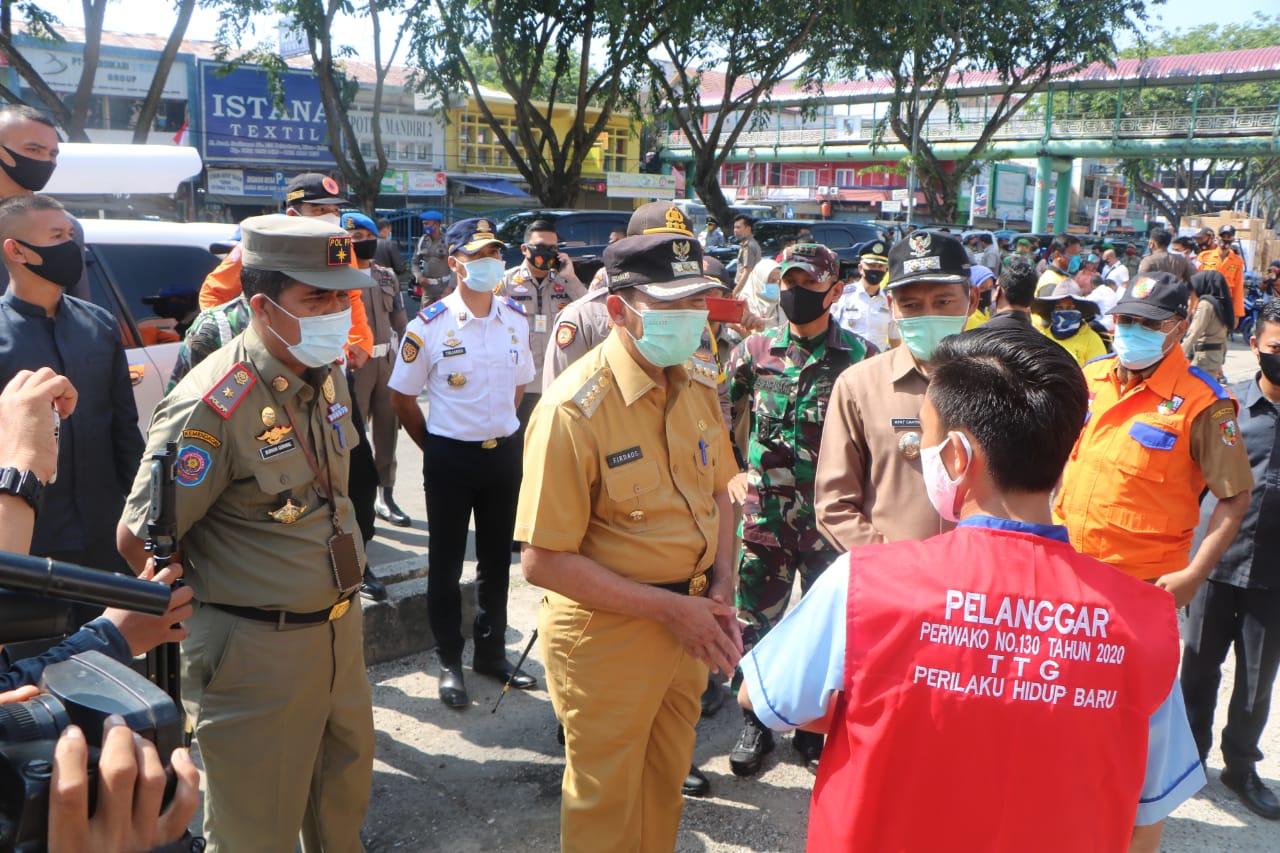 Detil.co,Pekanbaru - Dalam razia protokol kesehatan guna memutus penyebaran Corona Virus Disease (Covid-19) dengan sasaran masyarakat yang tidak menggunakan masker, yang di gelar Pemerintah Kota (Pemko) Pekanbaru bersama Tim Penegakkan Hukum Gugus Tugas Covid-19 didua lokasi, yakni Sukaramai Trade Center (STC) dan didepan Sudirman Square, jaring 59 warga.