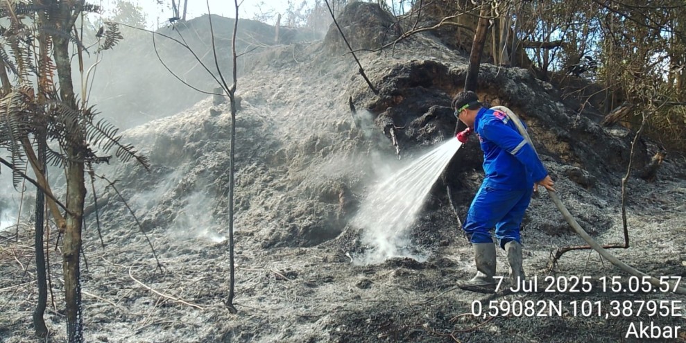 "Kami memastikan proses pemadaman sudah tuntas, tidak ada lagi sumber api yang menyulut kebakaran," terang Kepala BPBD Kota Pekanbaru, Zarman Candra.