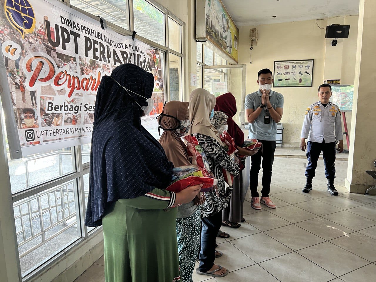 Bantuan beras dalam kegiatan "Perparkiran Berbagi" menyasar warga yang membutuhkan. Ada sekitar 100 karung beras yang diberikan bagi warga disekitar Pelabuhan Sungai Duku.