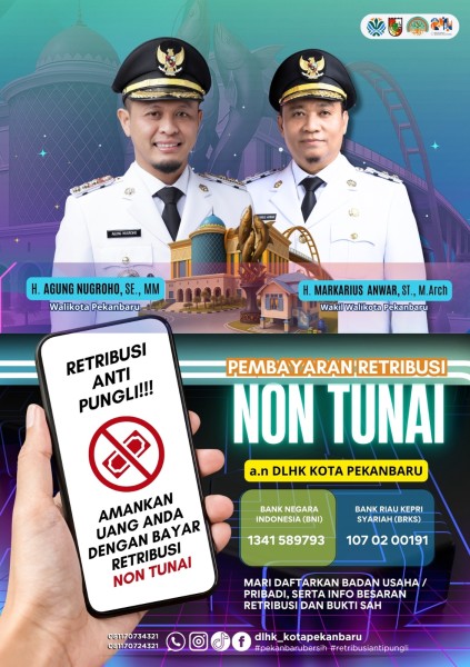 Retribusi sampah yang dikelola langsung oleh DLHK, dibayar secara non tunai lewat Bank Negara Indonesia (BNI), dan Bank Riau Kepri Syariah (BRKS).