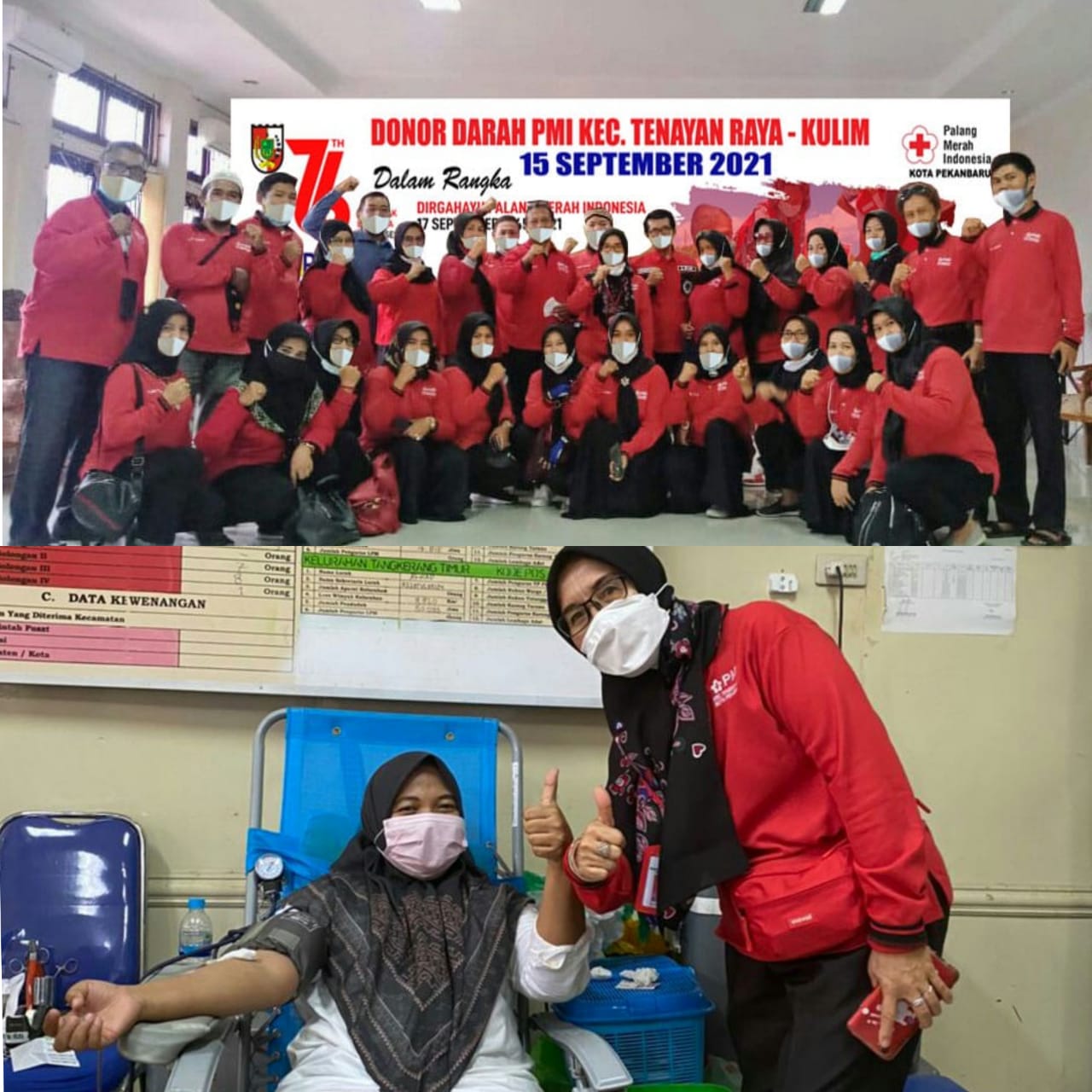 Detil.co,Pekanbaru - Palang Merah Indonesia (PMI) Kecamatan Tenayan Raya-Kulim, Rabu (15/9/2021) gelar Donor Darah rutin di aula Kantor Kecamatan Tenayan Raya, Jalan Budi Luhur.