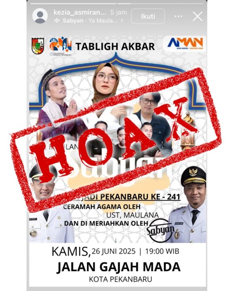 Seperti halnya kabar yang beredar di media sosial yang menyebutkan dalam rangka Hari Jadi Pekanbaru ke-241, akan dilaksanakan Tabligh Akbar di Jalan Gajah Mada pada Kamis 26 Juni 2025, pukul 19.00 WIB.
