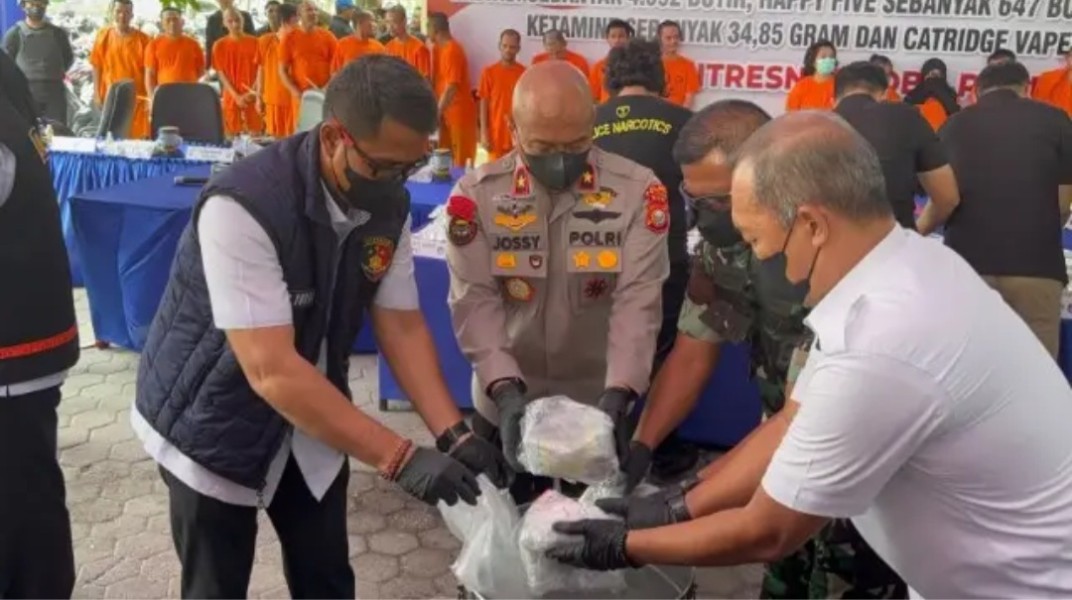 Pemusnahan tersebut dilakukan sebagai tindak lanjut dari proses penyidikan tindak pidana narkotika yang menjerat 34 tersangka, 4 diantaranya wanita.