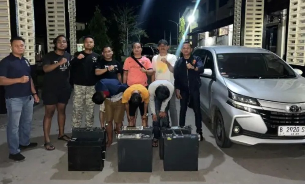 Tiga orang pelaku berhasil ditangkap bersama barang bukti berupa baterai dan kendaraan yang digunakan untuk melakukan aksi kejahatan.
