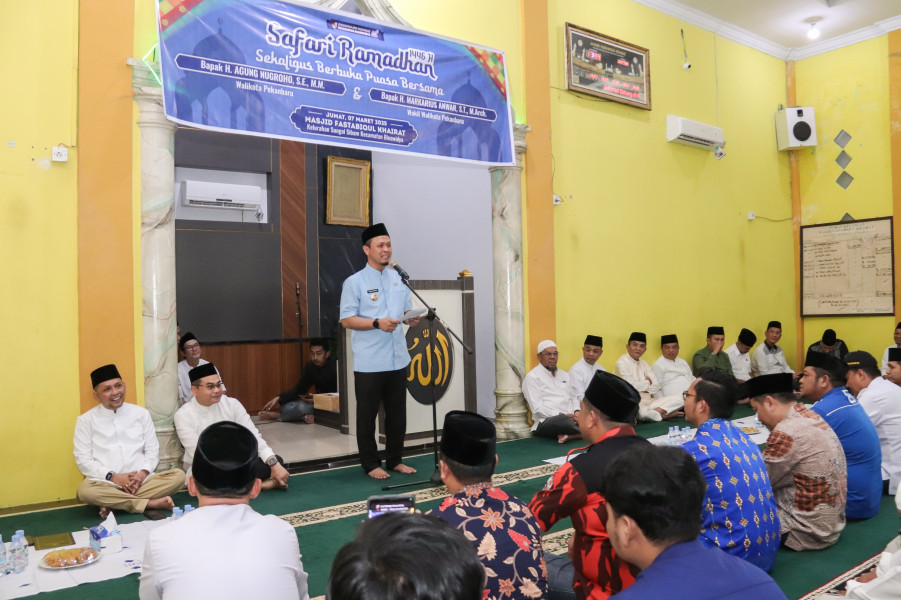 Detil.co,Pekanbaru - Safari Ramadhan Walikota (Wako) Pekanbaru, Agung Nugroho dan Wakil Walikota (Wawako) Pekanbaru Markarius Anwar disambut antusias warga, di Masjid Fastabiqul Khairat, Jalan Beringin, Kelurahan Sungai Sibam, Kecamatan Binawidya, Jumat (7/3) sore.