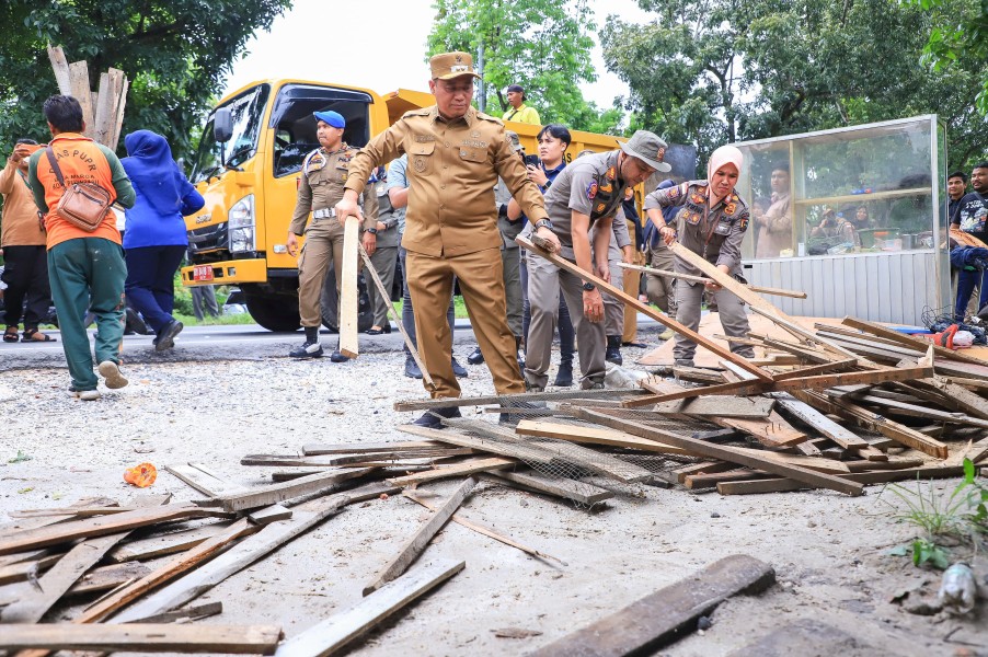 Wawako Pekanbaru Pimpin Apel dan Pembongkaran Warung Remang-remang di SM Amin